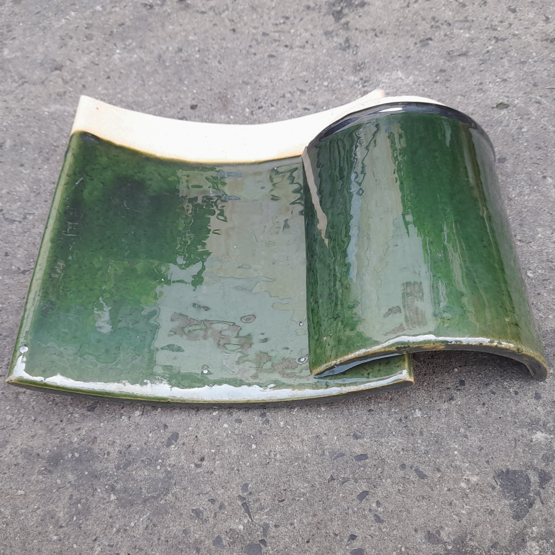 Ngói gốm âm dương men xanh lá